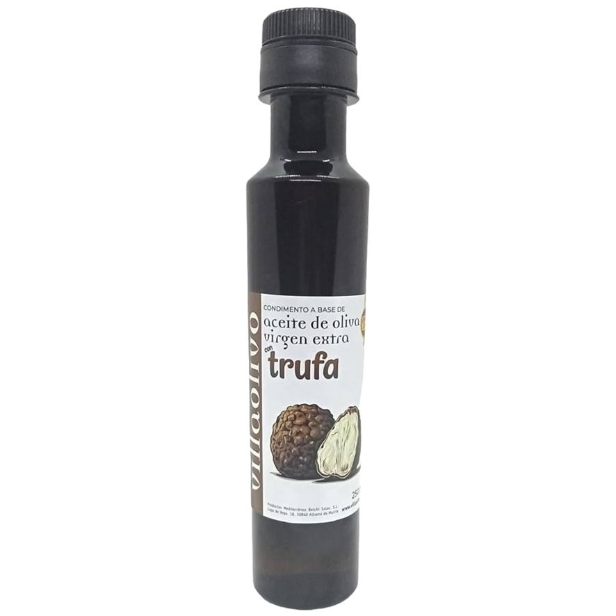 Aceite aromatizado de Trufa de Villaolivo es un producto gourmet que combina la riqueza del aceite de oliva con el inconfundible aroma y sabor de la trufa. Este aceite se caracteriza por su intenso y distintivo perfume terroso, que proviene de la trufa negra o blanca infusionada. Las propiedades de este aceite incluyen un alto contenido de antioxidantes y ácidos grasos monoinsaturados, que contribuyen a la salud cardiovascular. Además, posee vitaminas E y K, que son esenciales para la salud de la piel y los huesos. Su perfil de sabor único lo convierte en un excelente potenciador de platos, agregando profundidad y sofisticación a diversas recetas.