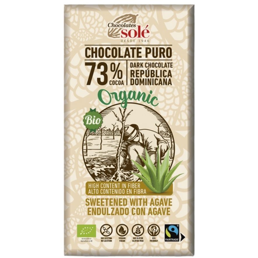 Dark Chocolate 73 with Agave Gluten Free Bio 100g Chocolates Sole