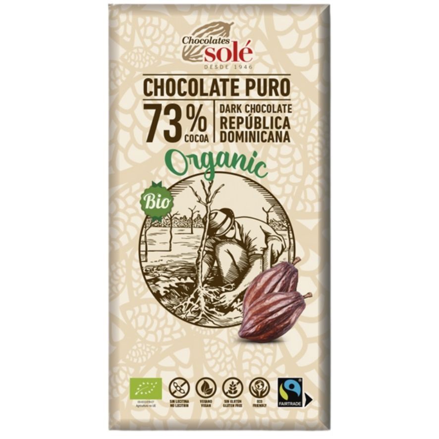 Dark Chocolate 73 Gluten Free Bio Vegan 100g Chocolates Sole