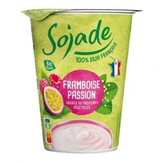 Soy Yogurt Passion Fruit and Raspberry flavor So Soja! 400gr Sojade. If you are looking for a vegan dessert rich in vegetable proteins that you can enjoy at any time of the day, this option from Sojade is for you. It is a vegetable yogurt based on soy milk and organic strawberry that gives it a different flavor and that you can consume alone or accompanied with fruit or muesli. It includes these vegan yogurts in the organic food of your entire family.