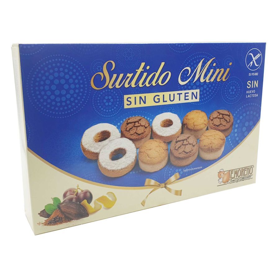 E. Moreno's Gluten Free Christmas Mini Assortment is a selection of Christmas sweets that includes lemon shortbread, chocolate and doughnuts, specially made without gluten. This assortment is designed for those who are looking to enjoy the traditional flavours of Christmas, without compromising their well-being. Ideal for people with gluten intolerance or sensitivity, it allows you to enjoy these delicacies on any festive occasion. Perfect for sharing, giving as a gift or enjoying at home, this assortment offers a delicious and affordable option for everyone who wants to maintain Christmas traditions without worries.